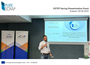PURESCRAP in action at the ESTEP Spring Dissemination Event! Today, our colleague Marco Vannucci presented research results from the PURESCRAP project, showcasing the work of Scuola Superiore Sant'Anna and Danieli Automation DIGI&MET. His talk highlighted AI-driven Copper detection in scrap metal, an important step towards advancing digitalization in sustainable steelmaking.The presentation took place during the […]
